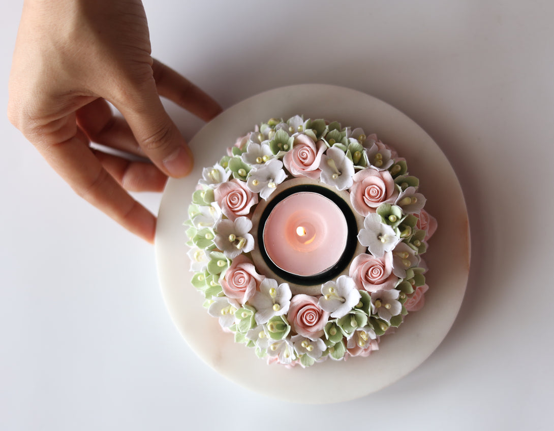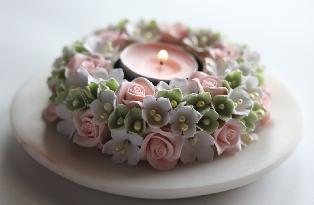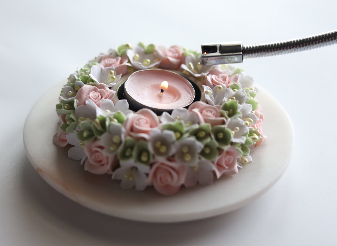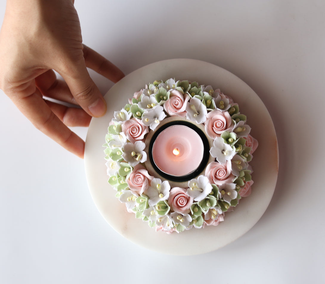 Illuminate your space with our exquisite handcrafted clay floral diyas, meticulously crafted by skilled artisans using eco-friendly deco clay. These vibrant flowers, set on a polished marble base, radiate beauty and charm. Simply place a tea light in the centre to witness a mesmerising play of colors that brings warmth and elegance to any setting.